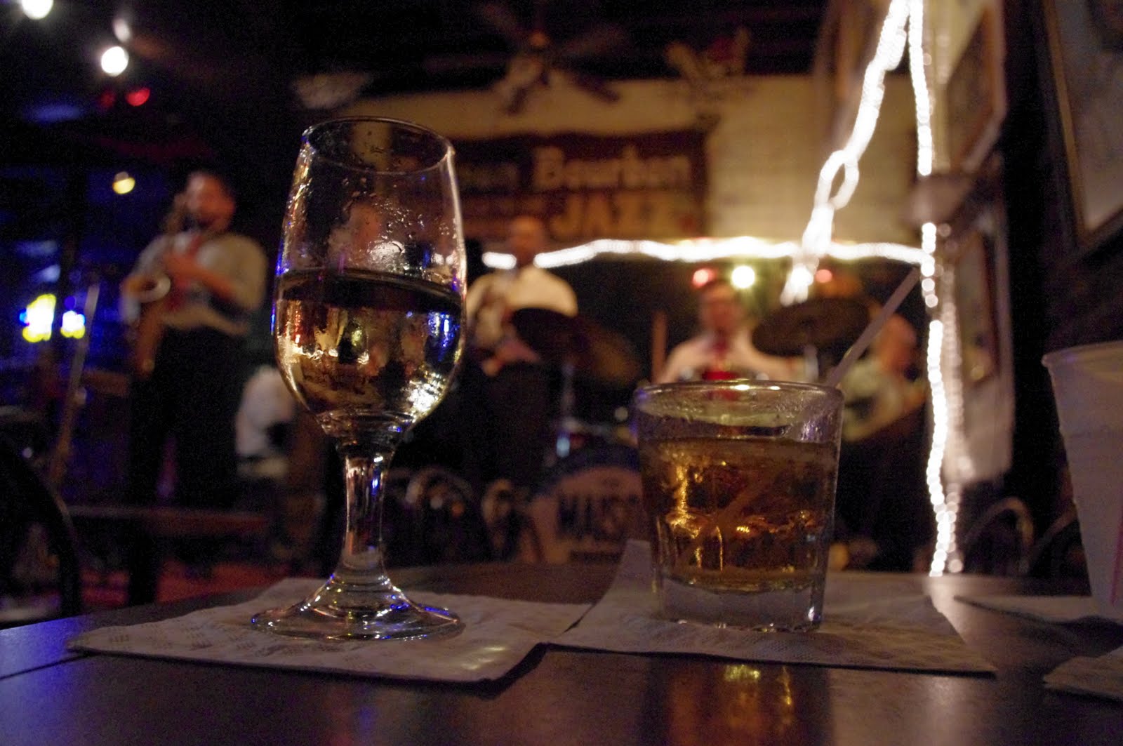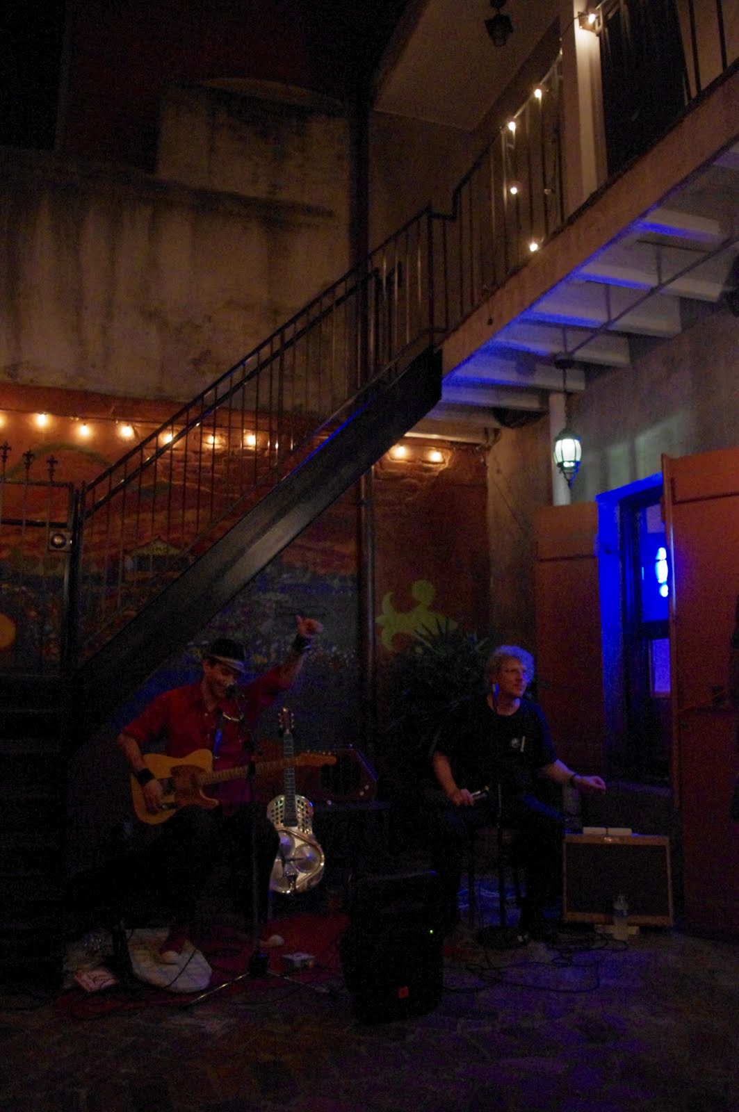 Later we were ready for some live music and some drinks so we headed up to the Maison Bourbon on Bourbon street and watched a great live jazz band. We were there early so Bourbon street was a bit quiet when we arrived. As we left the Maison the street had completely changed. We discovered that Bourbon street has an abundance of overly drunk people drinking cocktails from plastic cups shaped as grenades and small shops selling "huge ass beers" for 2 dollars... So we decided that the best way to have a good time in New Orleans is to stay off circus Bourbon street and find small bars that have live music. We headed to Frenchman's street and found some bands playing music in the streets and a great duo playing blues cover songs in the backyard of the BMC. All in all a great first day in New Orleans.