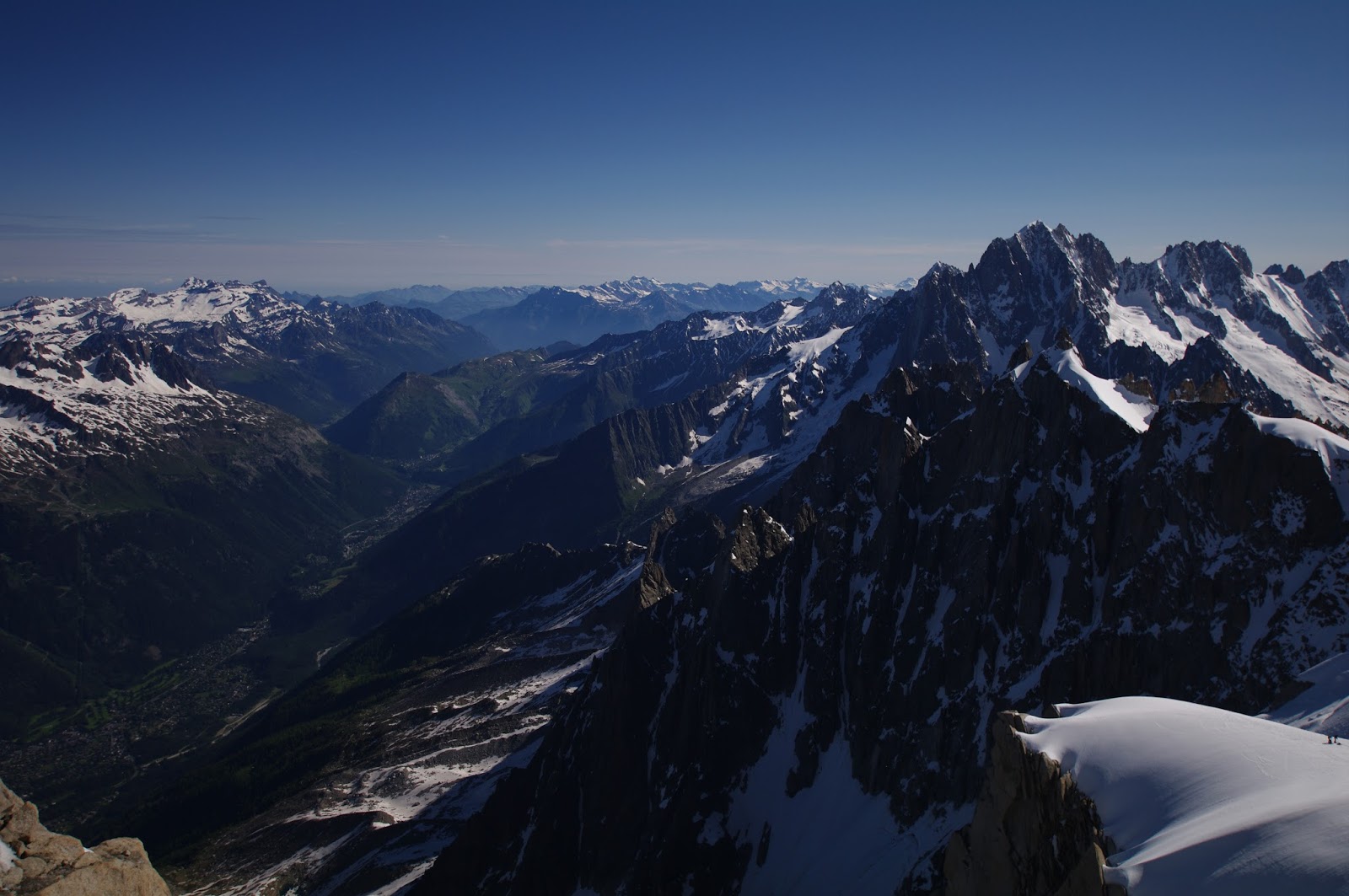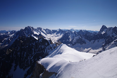 On Monday we woke up early to clear blues skies. Perfect weather, since we had planned to get to Aguille du Midi. At 8 am there were no queues. The cable car takes you straight up to 3842 meters above sea level. The 360 degree views are breathtaking. We spent a better part of two hours taking pictures and experienced a brief moment of altitude sickness, or dizziness after running up some stairs.