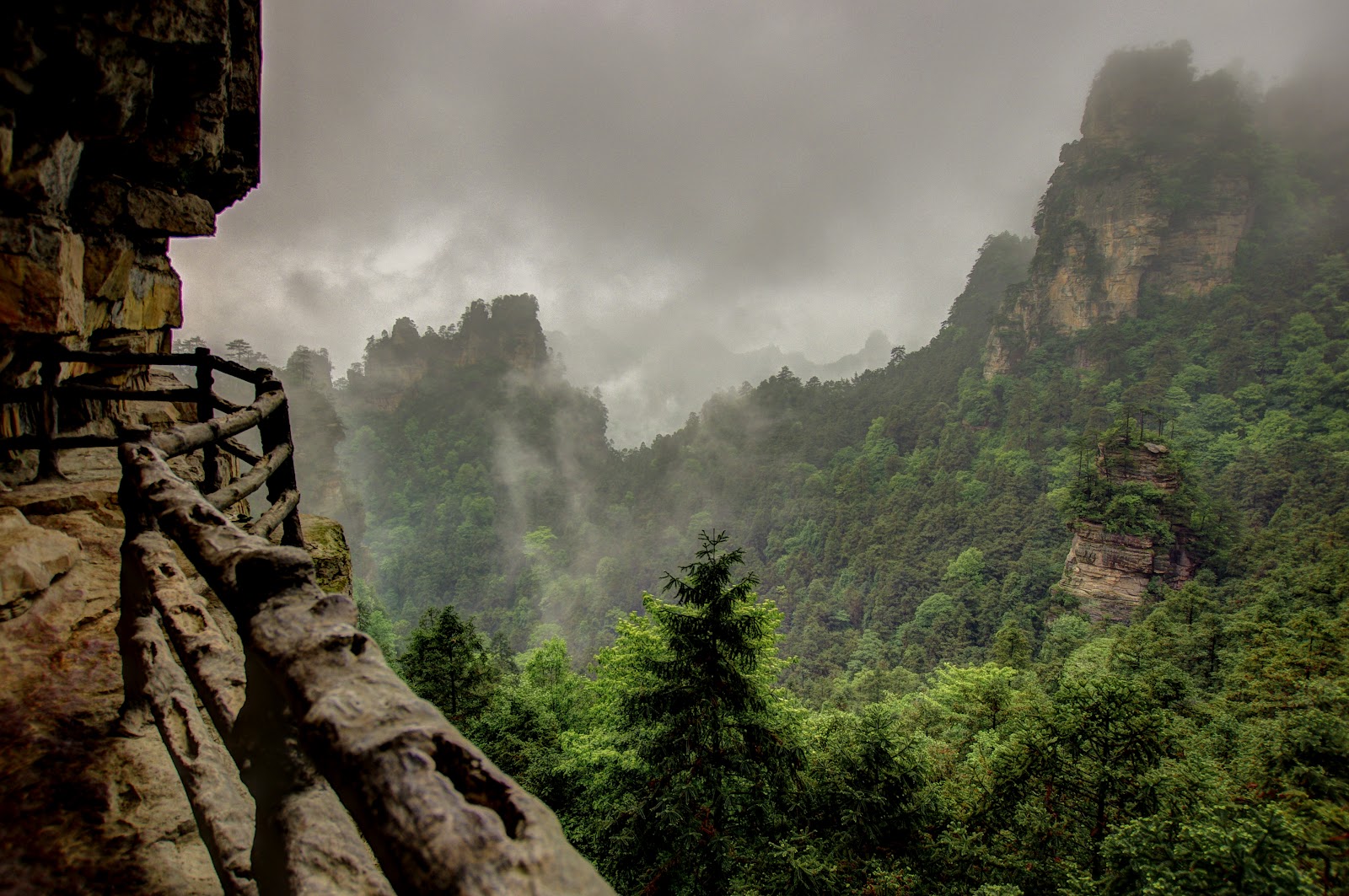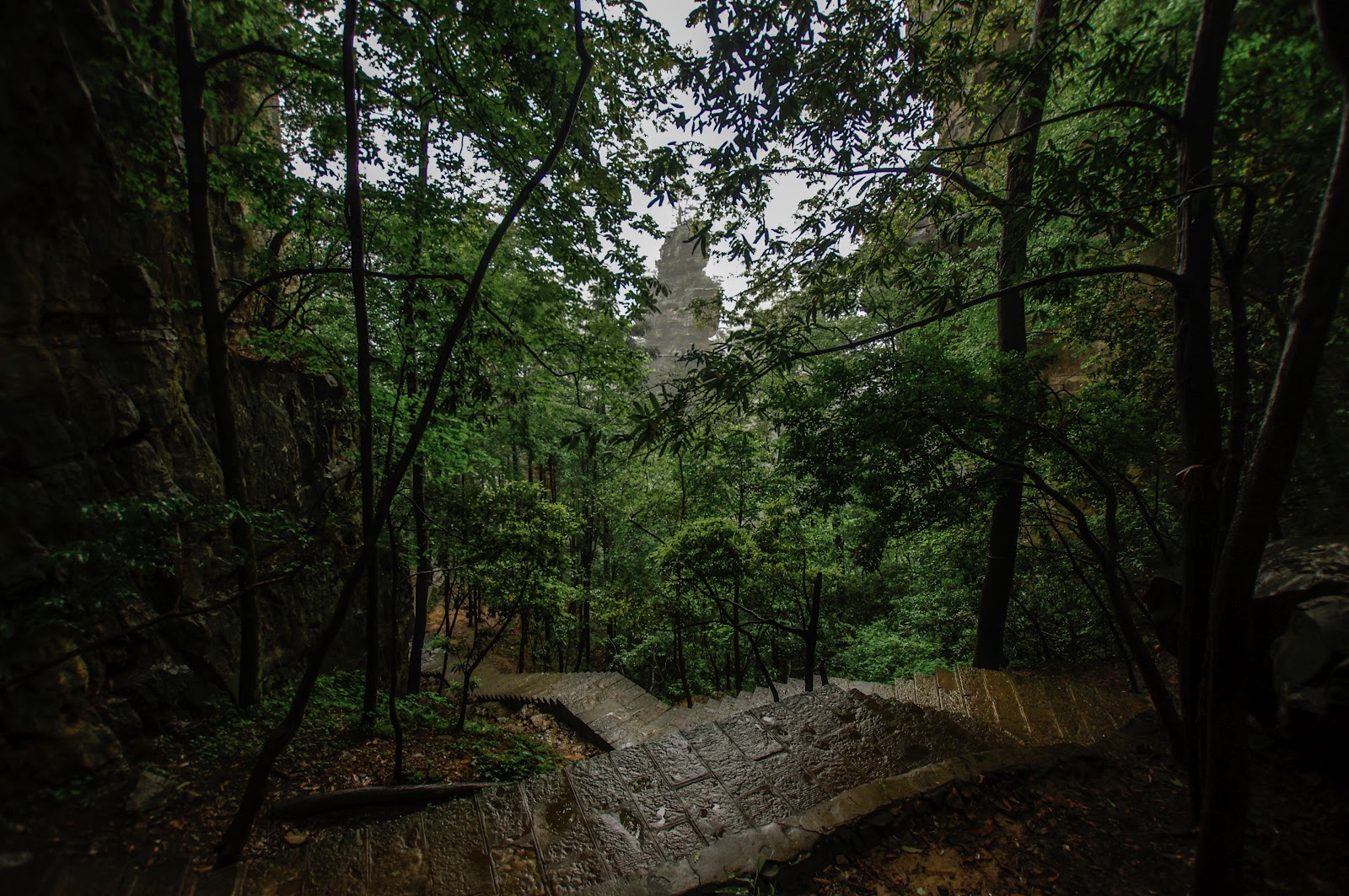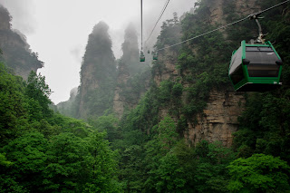 We headed into the national forest on a rainy day, we got some lucky breaks from the rain and we made the most of them. We took the cable car to the top of Tianmen Mountain, it was really foggy but it set a very intense mood. Huge mountain peeks sticking out of the dense fog made for some really cool scenery. On the way up we vanished into the clouds and visibility went down to zero. After trying to figure out which way to go on our map we headed down the many steps to the bottom. We walked for a while along the river before we headed back to our hotel for the night.