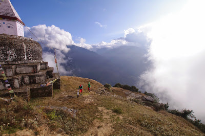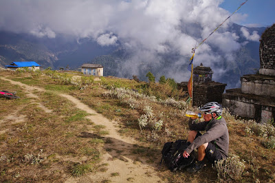 We woke up in Bandhar valley and ate a good breakfast. After making sure everything was set up for Didier's helicopter evacuation we decended further into the valley. A great downhill awaited us along this trail. Riding on the cliff edge we rode very fun jeep tracks down the mountain. Marcus showed off his aweinspiering bike skills by clearing some rather extreme trails that one would think only a mountain goat would attempt. At the bottom of the valley we reached a river. We rode along the river before we began our 1500 meter acent. The incline was about 15% and was really challenging. At some parts the monsoon had destroyed the road and we were forced to climb straight up between the switchbacks with the bike on our backs. On the way we stopped at a small house for some noodle soup and some snickers. A good and needed energy boost before we continued our climb. At this height we began to feel the effects of the altitude I started to climb fast as I could to reach the top. This was a big mistake, not yet accustomed to the height I did run the risk of getting altitude sickness. Tangi, our guide, caught up with me and reminded me that this was not wise. I took his words to heart and put my ego and sense of competition away. We were a team, and who ever made it to the top first did not matter as long as we all made it.