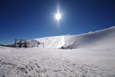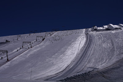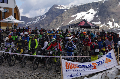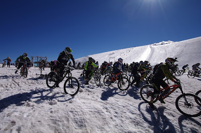 Just as we arrived at the glacier, the fog lifted and the sun started warming nicely. Clear blue skies and amazing views, 700 bikes all lined up ready to slide down on the snow. It just made everything worth it.